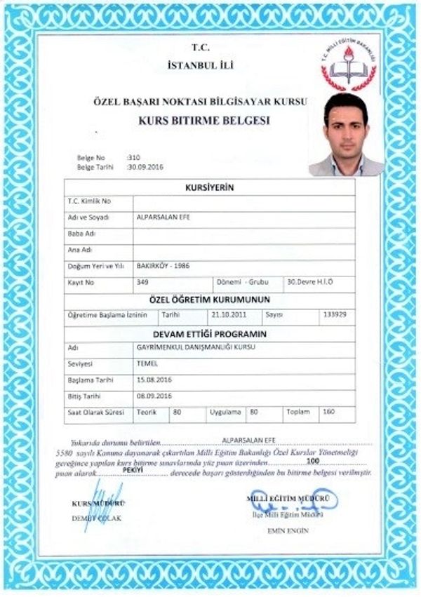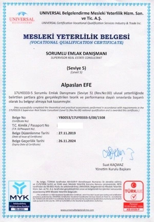 •Sorumlu Emlak Danışmanı (Seviye 5) Mesleki Yeterlilik Kurumu (MYK)