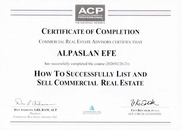 •Amerika'dan Lisanslı Akredite Ticari Gayrimenkul Uzmanı (ACP)